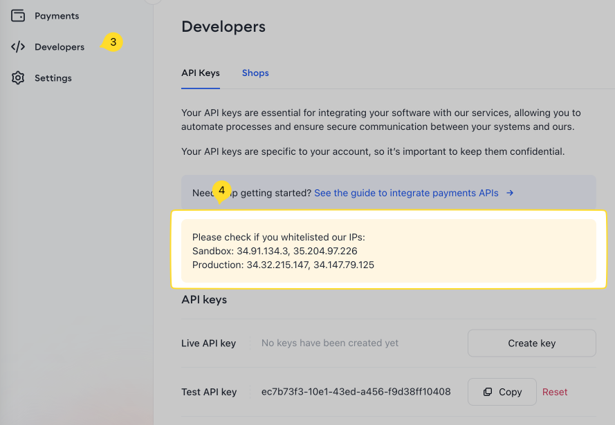 - You will see a list of Shops. For each store, specify the list of IP addresses that will be sending requests.